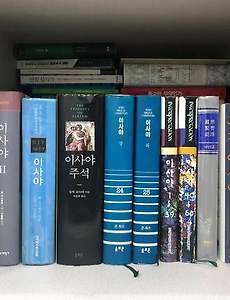 안녕하세요? 이번에도 좋은 모임이 시작되었군요! 관리자께서 또 기회를 주셔서 제가 가지고 있는 이사야 주석을 소개하도록 하겠습니다. 왼쪽부터 NICOT 두 권(존 오스왈트), NIVAC(존 오스왈트), 이사야 주석(알렉 모티어), WBC 두 권(존 와츠), Interpretation 두 권(1~39, 크리스토퍼 사이쯔/40~66, 폴 핸슨), OTL (국제성서주석 40~66, 클라우스 베스터만), 특강 이사야 (김근주), 제5 복음서(존 소여), DSB 두 권(존 소여)입니다. 그리고 이 사진에 나오진 않는 두 권의 책인 OTL (국제성서주석 1~12/13~39, 월터 카이저)도 가지고 있고 읽기도 했습니다. 특별히 저 책들 중 DSB의 저자인 존 소여가 쓴 『제5 복음서』는 주석이라기보다 서방교회가 역..