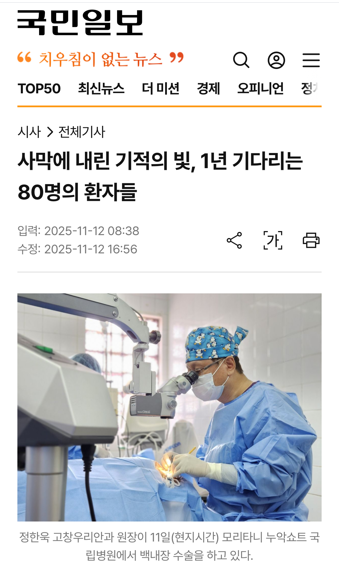 | 국민일보 11월 14일자 기사 - 모리타니아 의료장비 지원 (0) | 2025.11.22 |