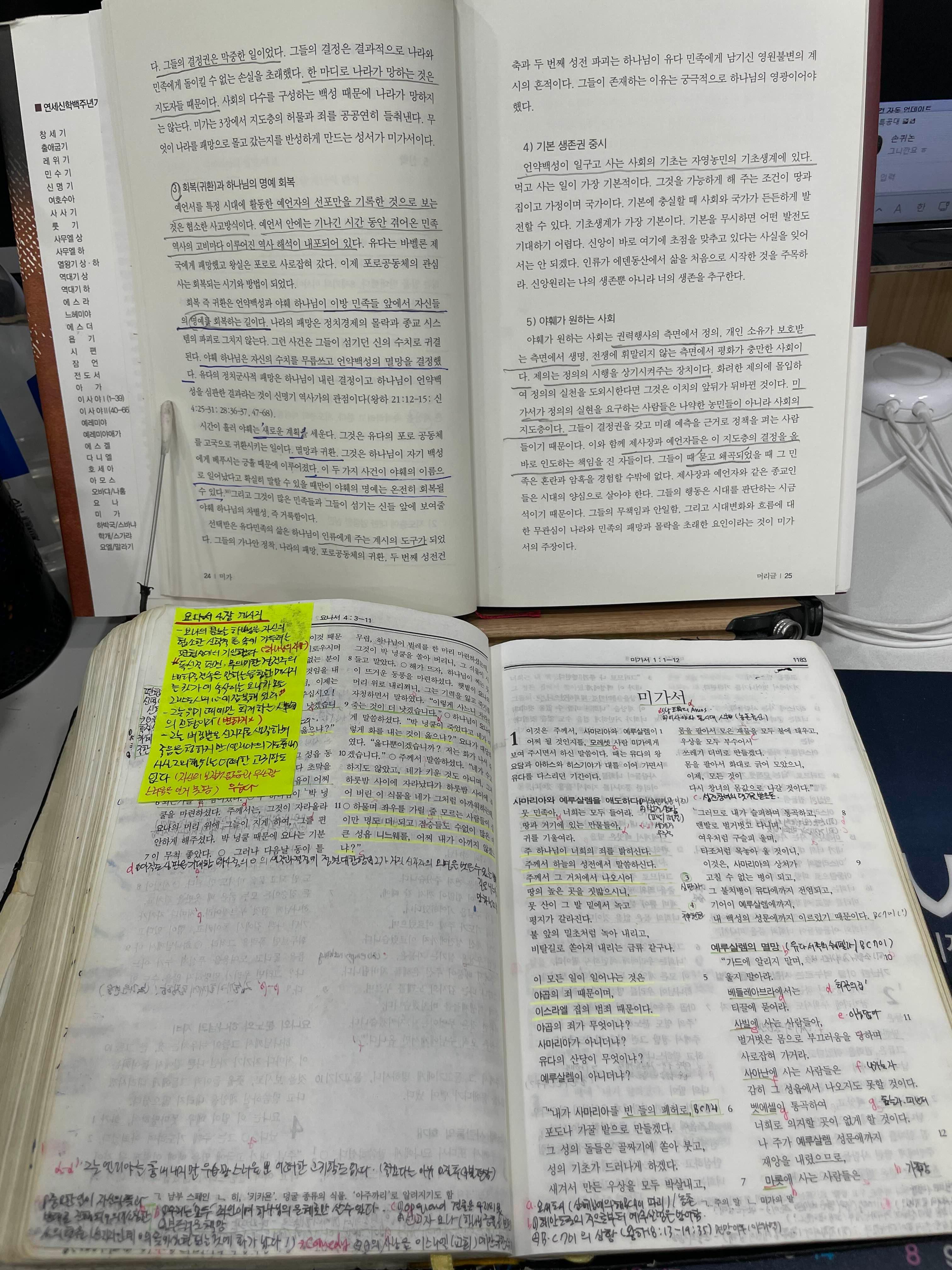 지난 토요일에 ‘성경묻고 답하기’ 온라인 모임이 있었습니다. 이번에는 『연세신학 백주년기념 성경주석 - 미가』를 읽고 저자이신 침신대 신대원 우택주 교수님을 모셔서 묻고 답하기를 진행했습니다.