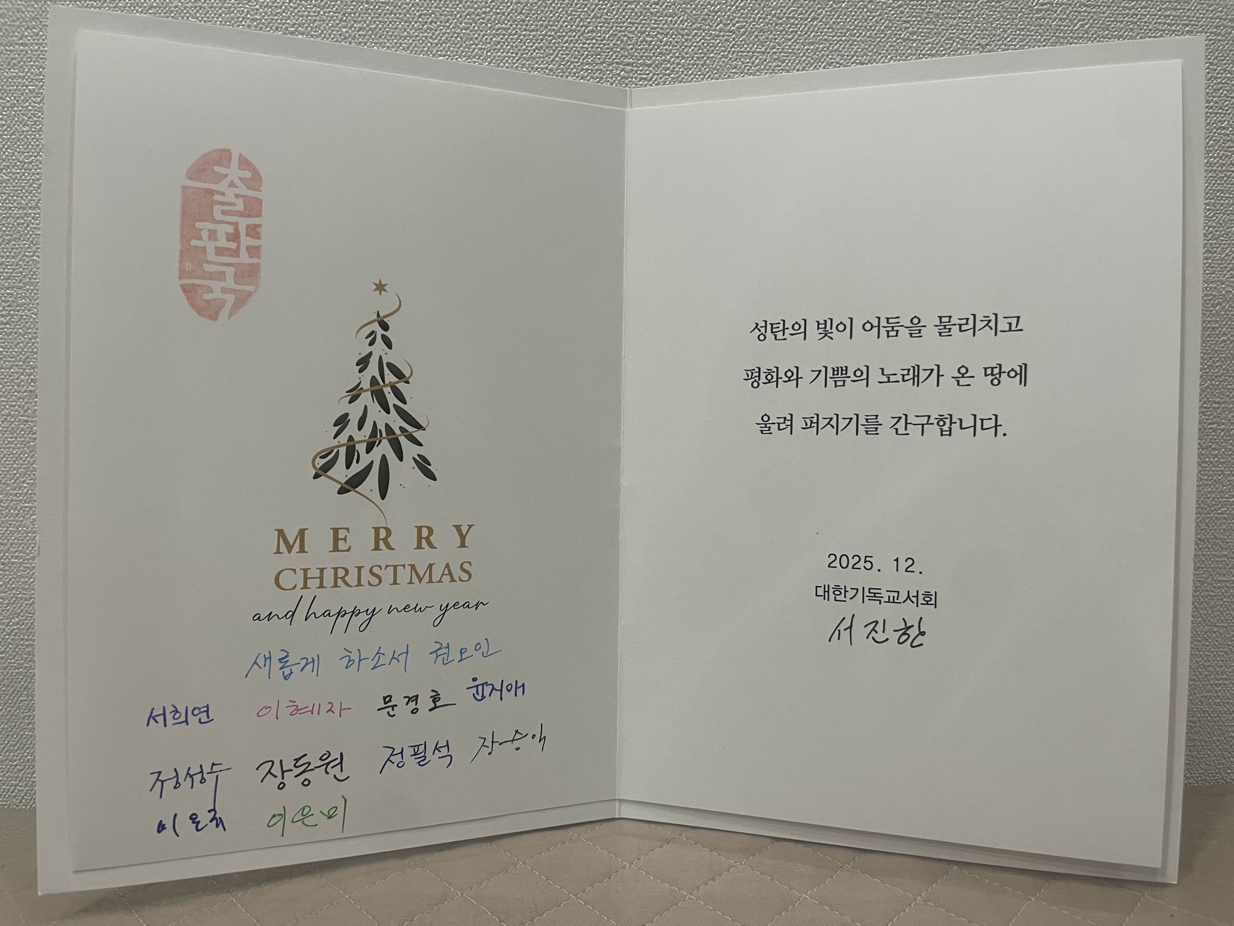대한기독교서회에서 출판국 직원들의 서명이 담긴 예쁜 성탄카드를 보내 주셨습니다. (사진 1,2) 아마도 올해 5월호부터 10월호까지 <기독교사상>에 여섯 차례 연재한 ‘내 삶의 등불이 되어준 대한기독교서회의 책들’을 기억해 주신것 같습니다. (사진 3) 역사와 전통을 자랑하는 <기독교사상>에 연재 지면을 허락받은 것만으로도 놀라운 일인데 이렇게 성탄 카드까지 보내주시니 더 감사하네요!