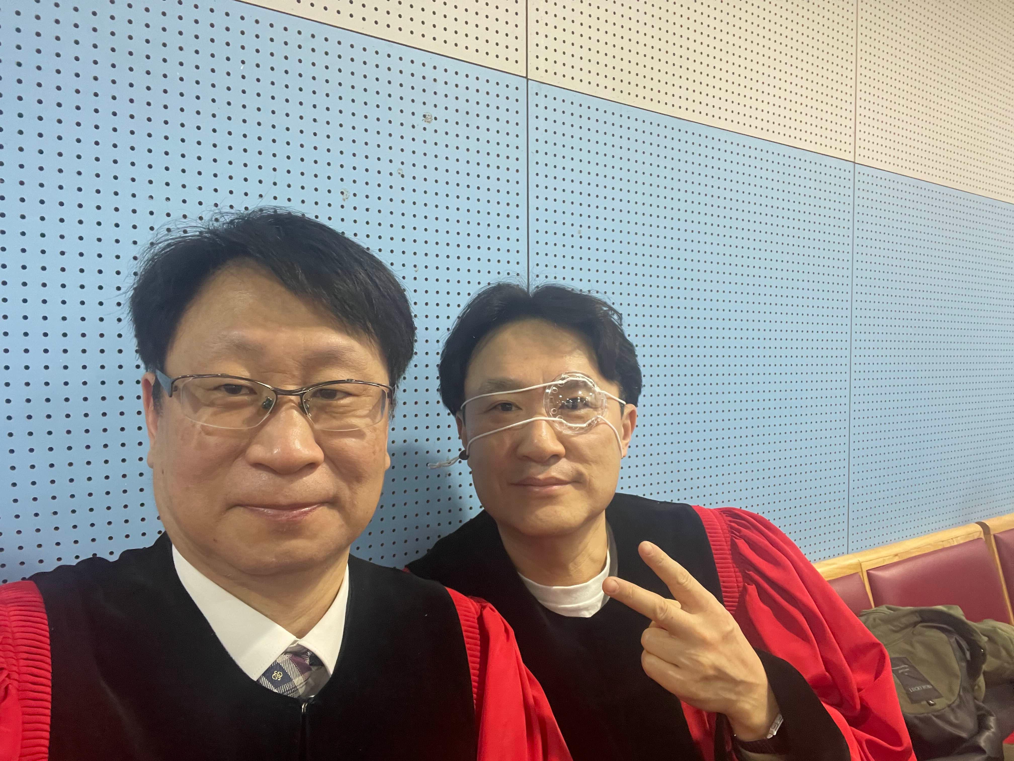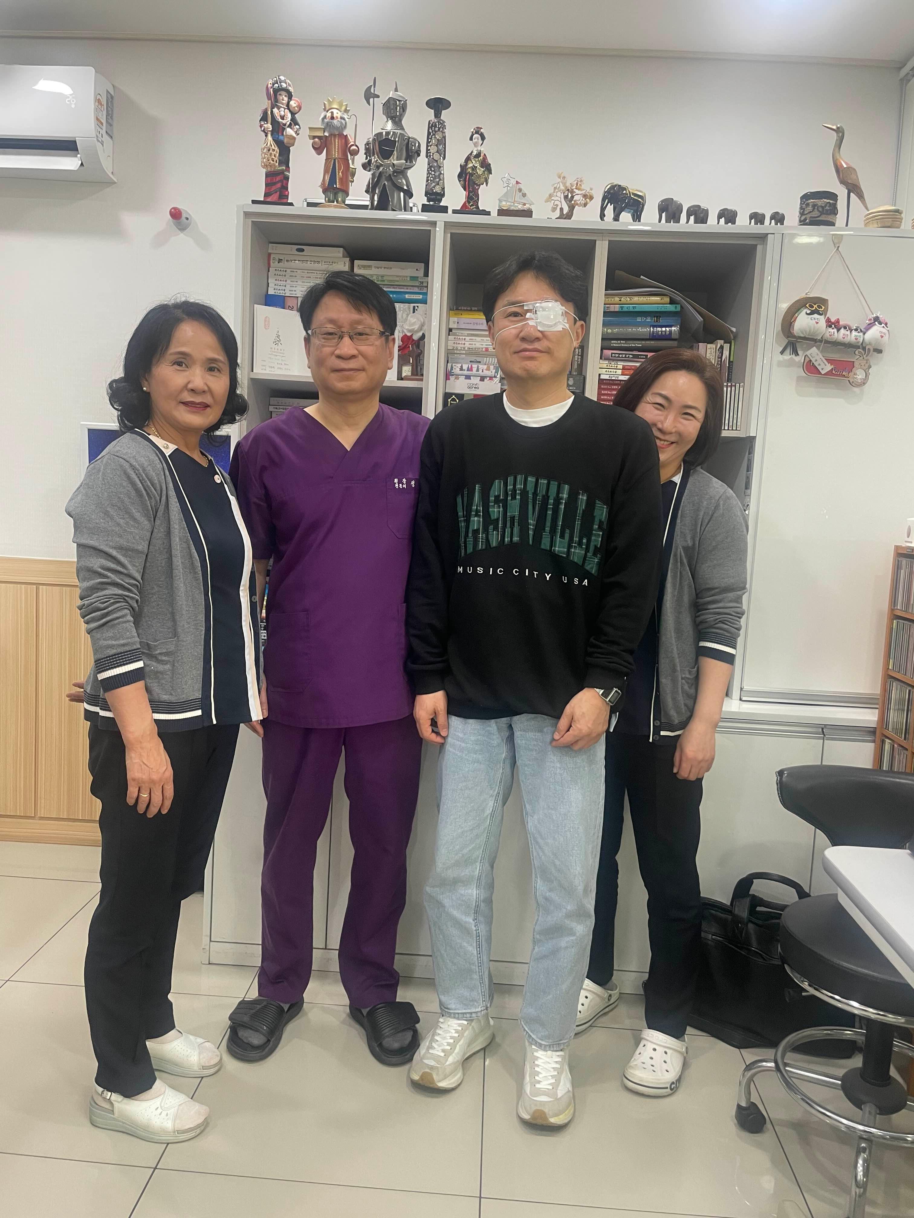 어제 오전에 교회 성가대 단짝인 후배 권오상 집사의 백내장을 수술했습니다. 눈동자가 잘 안커지고 그나마 수술중 계속 줄어드는 쉽지 않은 상황이었지만 다행히 잘 마무리되었네요. 수술후 모리타니아에서 함께 땀흘렸던 우리병원 나병애, 서보경쌤과 함께 점심을 먹었습니다. 그리고 저녁에는 동료 간병차(?) 성가대 후배인 이준호, 표원기 집사가 고창에 내려와 수술환자의 원기보충을 위해 선배가 산 맛있는 소고기를 본인들도 폭풍 흡입했다고 합니다 ㅋㅋㅋ 오늘 확인해보니 다행히 수술결과는 나안시력 1.0으로 아주 좋네요. 40년간 인연을 이어 온 절친후배를 내 손으로 수술해주게 되어 정말 기쁩니다. 이로서 부모님과 아내에 이어 단짝 후배까지 부담스러운 백내장 수술 4관왕을 달성한 셈이로군요. 더 밝아진 눈으로 앞으로도 오래도록 성가대에서 함께 찬양했으면 좋겠습니다.