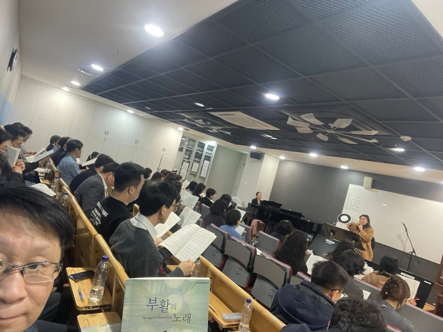 오늘은 찬양위원장과 청년위원장을 겸하고 셀리더로도 섬기는 제게 특별히 분주한 주일이었네요! 주일예배(찬양대) - 식당봉사 - 예배특송 리허설 - 부활절 칸타타 연습 - 청년부 예배 및 청년부에서 만난 딸. 저는 일상이야말로 그리스도인의 본질을 구현하는 장이라는 신념을 품고 살아왔습니다만, 장로가 되니 교회를 돌보고 섬기는 책임까지 어깨에 지게 되었네요. 짐이 가볍지 않지만 즐겁게 감당하려 노력중입니다!